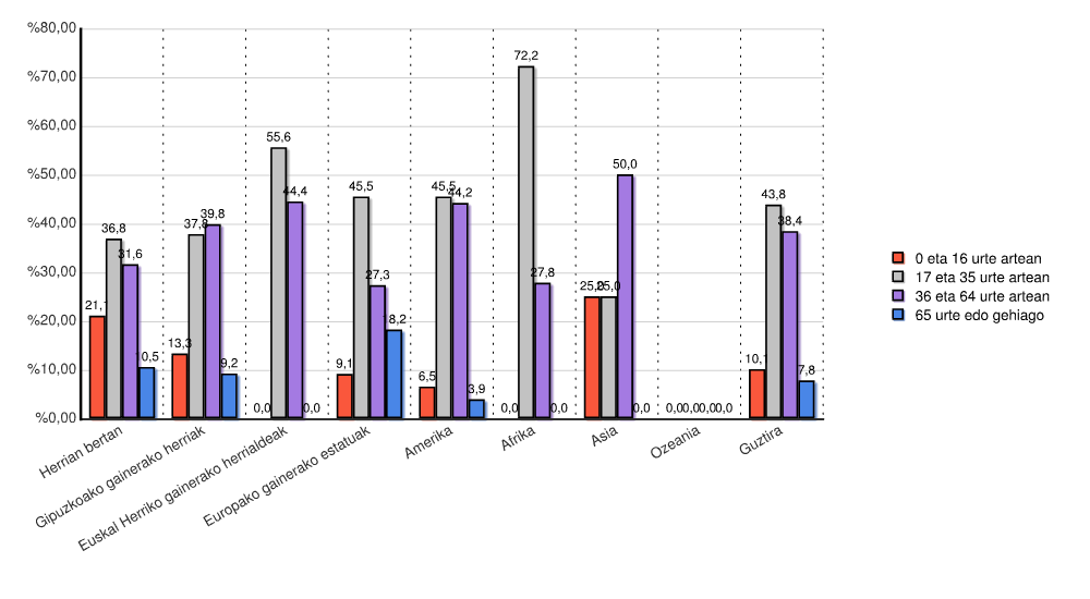 | Euskal Herriko gainerako herrialdeak | 0 | 0,0 | 5 | 55,6 | 4 | 44,4 | 0 | 0,0 | 9 | 100,0 |