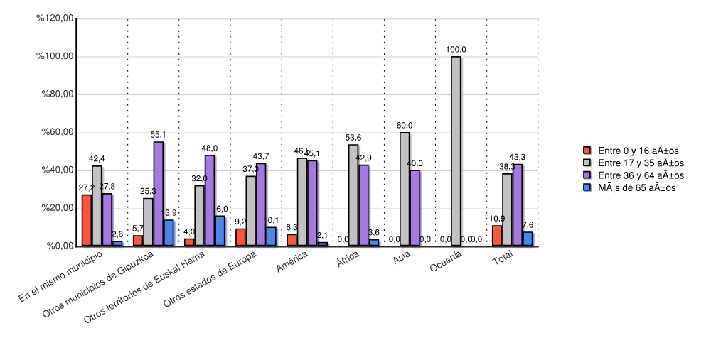 | Otros municipios de Gipuzkoa | 9 | 5,7 | 40 | 25,3 | 87 | 55,1 | 22 | 13,9 | 158 | 100,0 |