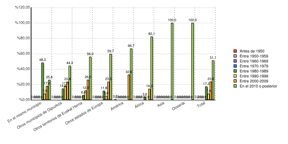 | Otros territorios de Euskal Herria | 0 | 0,0 | - | - | - | - | - | - | 3 | 6,0 | 6 | 12,0 | 13 | 26,0 | 28 | 56,0 | 50 | 100,0 |