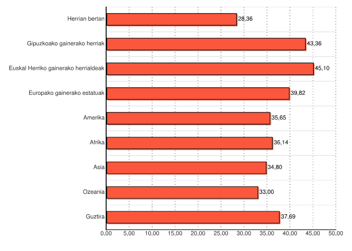 | Euskal Herriko gainerako herrialdeak | 45,1 |