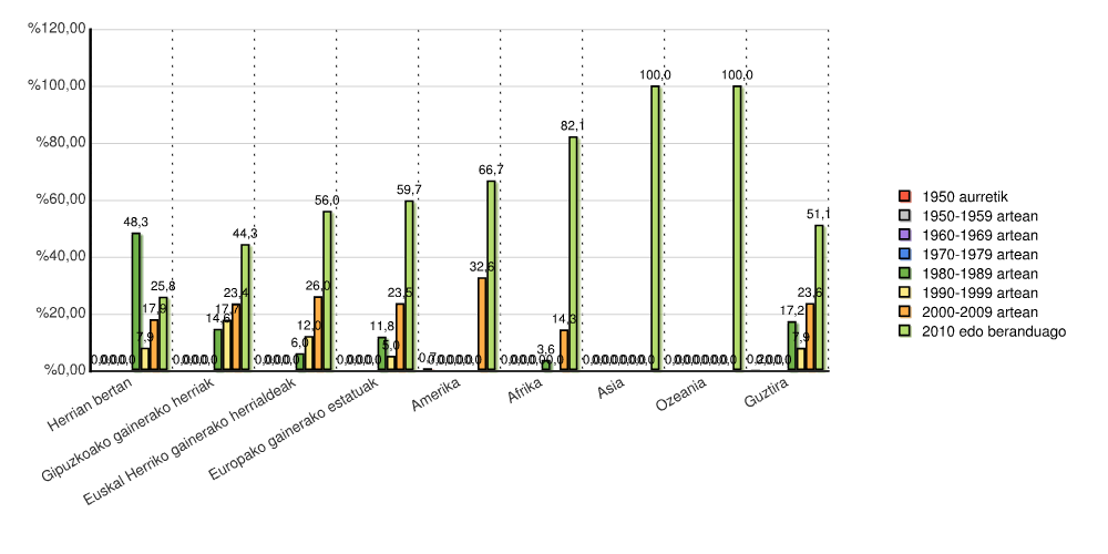 3.2.2.4 Grafikoa: Jatorria Kontinente eta Erroldatze urtearen arabera