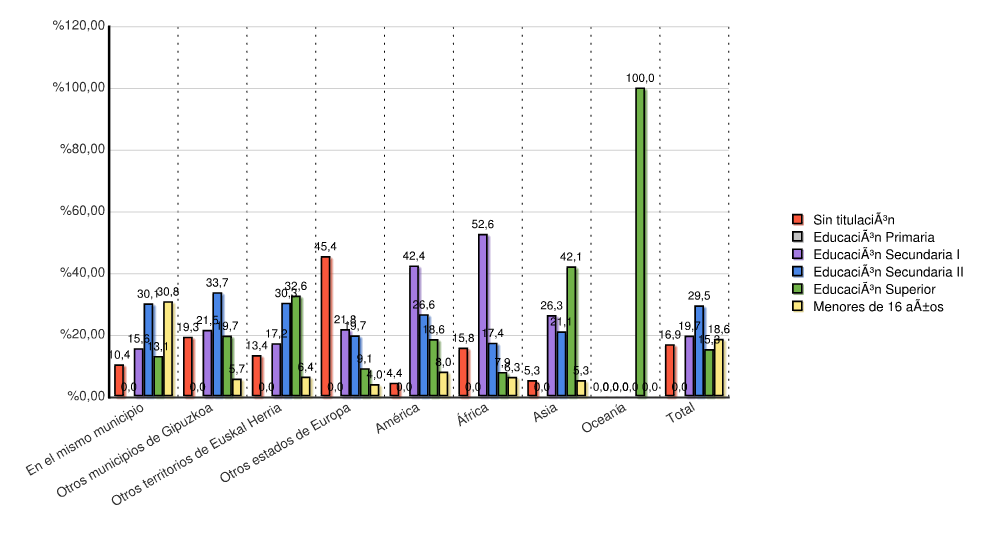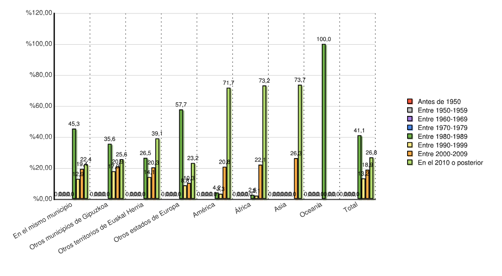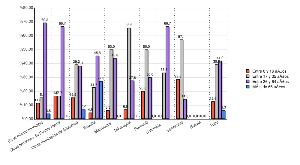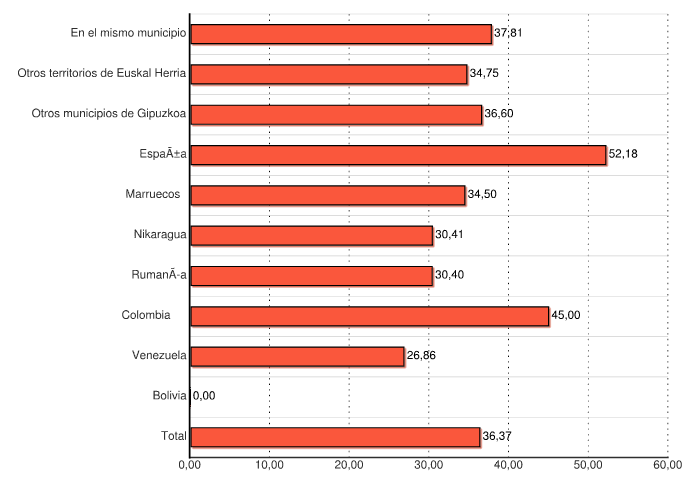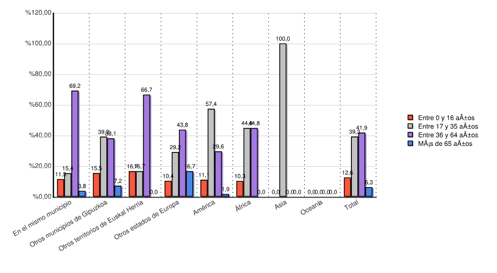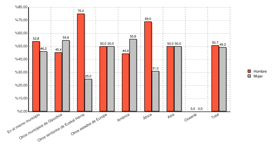 | Otros municipios de Gipuzkoa | 1.316 | 48,2 | 1.415 | 51,8 | 2.731 | 100,0 |