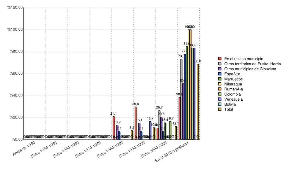 | Otros municipios de Gipuzkoa | 0 | 0,0 | 0 | 0,0 | 0 | 0,0 | 0 | 0,0 | 7 | 13,2 | 8 | 15,1 | 11 | 20,8 | 27 | 50,9 | 53 | 100,0 |