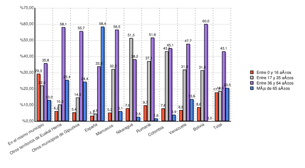 | Otros municipios de Gipuzkoa | 2.731 | 100,0 | 147 | 5,4 | 398 | 14,6 | 1.521 | 55,7 | 665 | 24,4 |