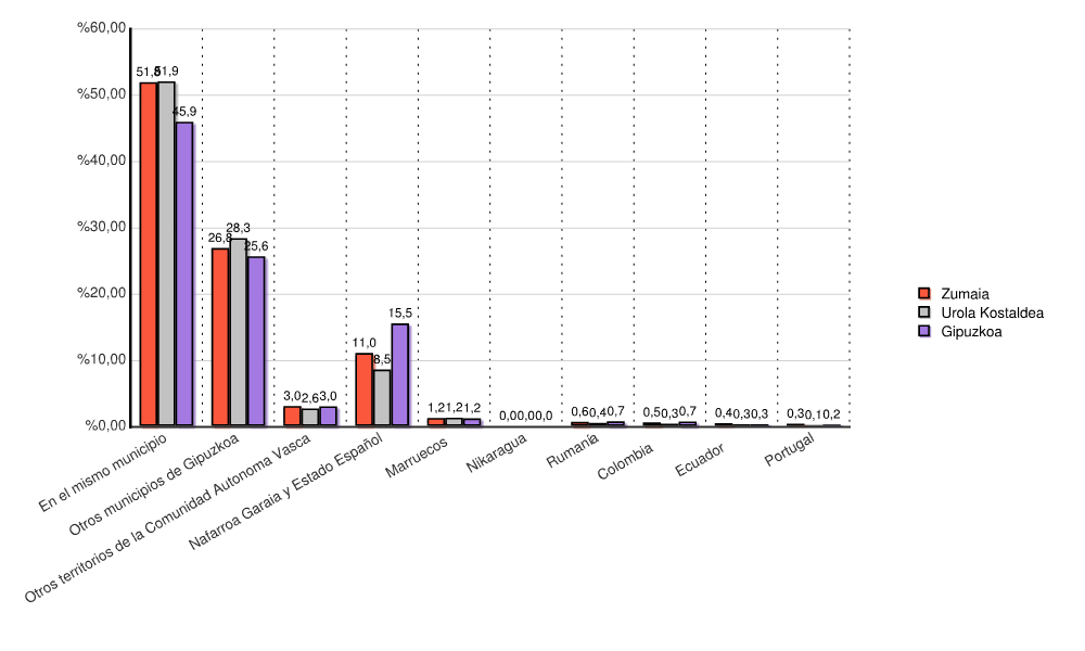 | En el mismo municipio | 5.232 | 51,8 | 39.530 | 51,9 | 331.820 | 45,9 |