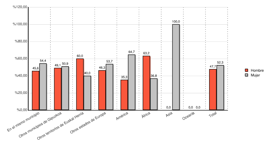 | Otros municipios de Gipuzkoa | 26 | 49,1 | 27 | 50,9 | 53 | 100,0 |