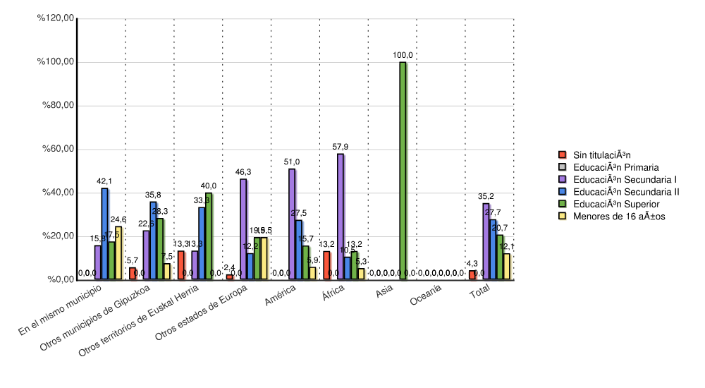 | Otros municipios de Gipuzkoa | 3 | 5,7 | 0 | 0,0 | 12 | 22,6 | 19 | 35,8 | 15 | 28,3 | 4 | 7,5 | 53 | 100,0 |