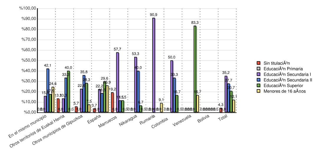 3.3.2.5 Taula: Jatorria Estatua eta Ikasketa Mailaren arabera