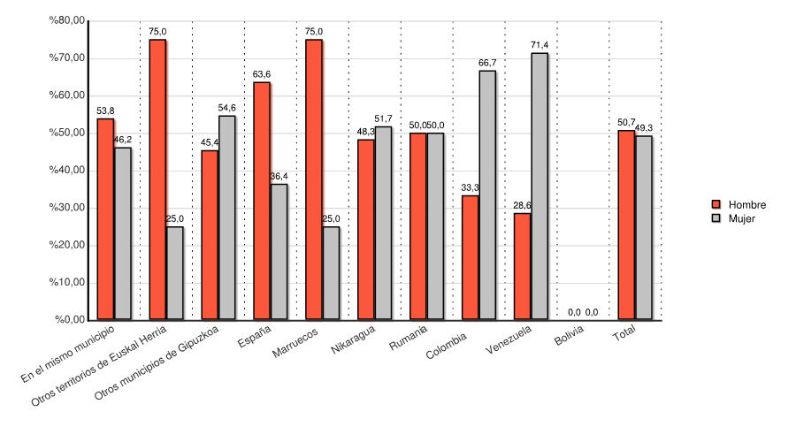 | Otros territorios de Euskal Herria | 9 | 75,0 | 3 | 25,0 | 12 | 100,0 |