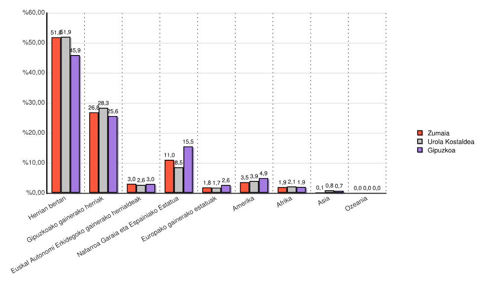 Jatorri aniztasuna 2020 / Jaiolekua ingurunearekin alderatuta / Kontinenteen arabera / Herria eta bere ingurunea