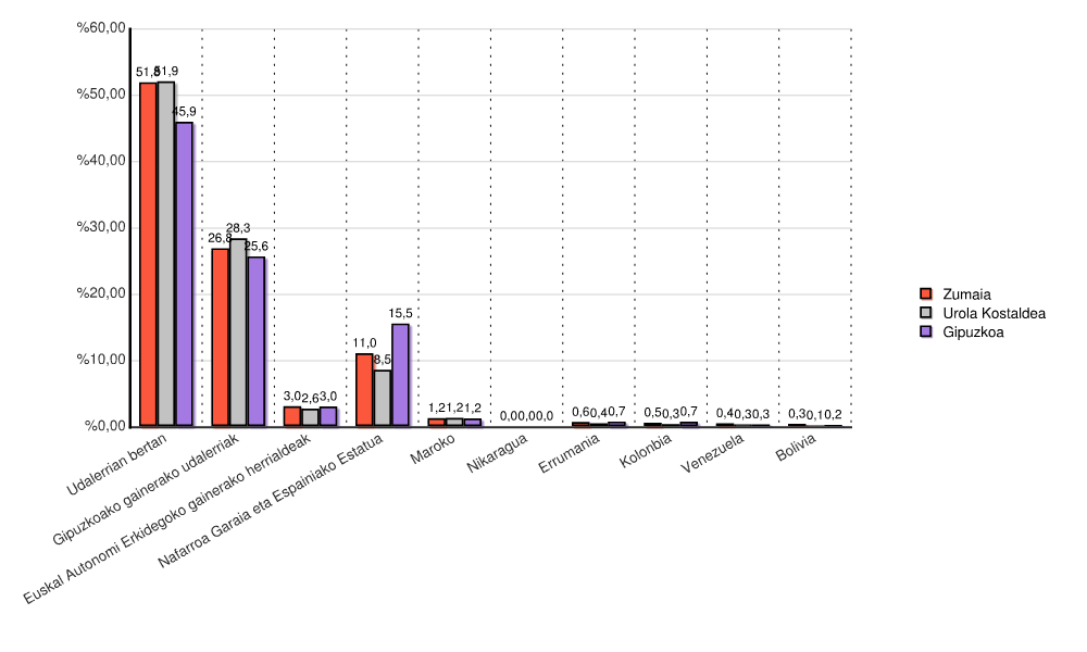 | Udalerrian bertan | 5.232 | 51,8 | 39.530 | 51,9 | 331.820 | 45,9 |